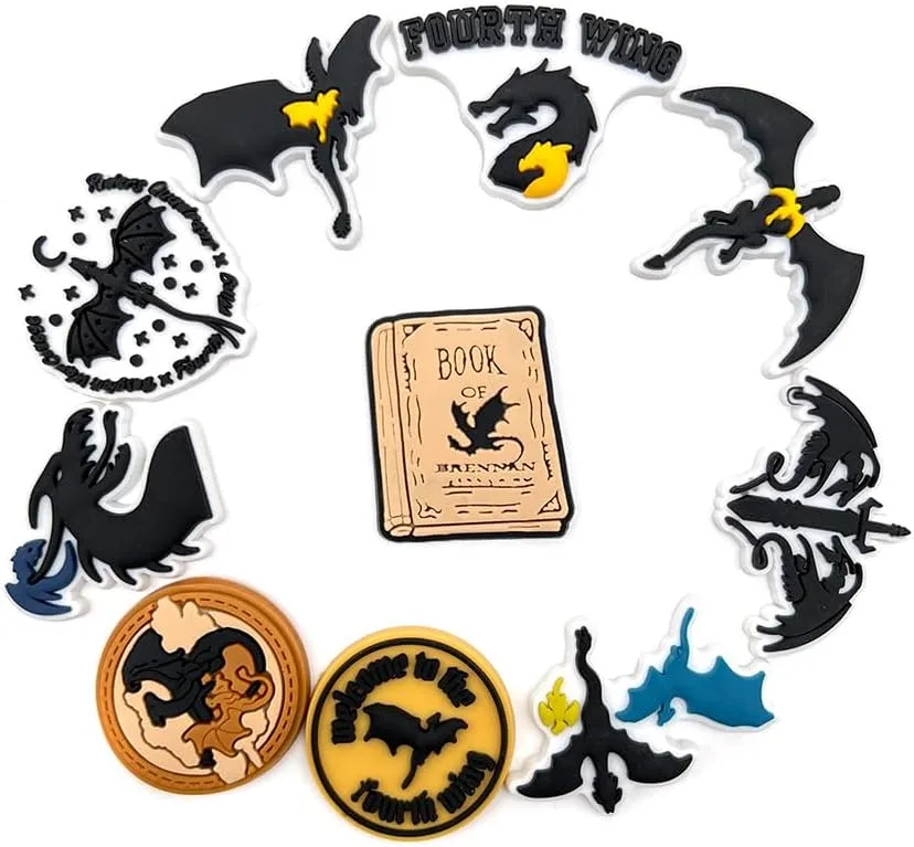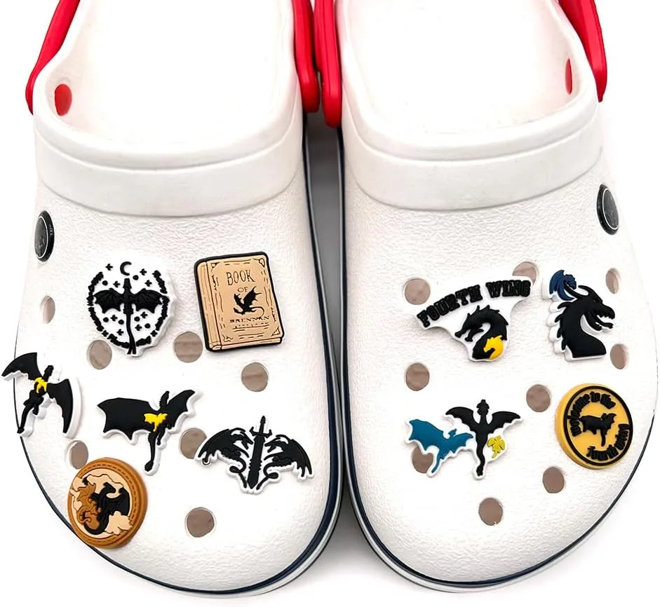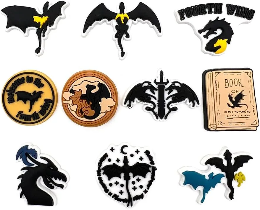 For every fantasy enthusiast who dreams of soaring with dragons, these Fourth Wing shoe charms offer a magical touch to everyday footwear. This durable, stylish collection of 10 unique dragon-themed PVC charms transforms ordinary shoes into a canvas for your passion, making them the perfect accessory for personal expression or a thoughtful gift for any fan of the mythical or the beloved 'Fourth Wing' series.