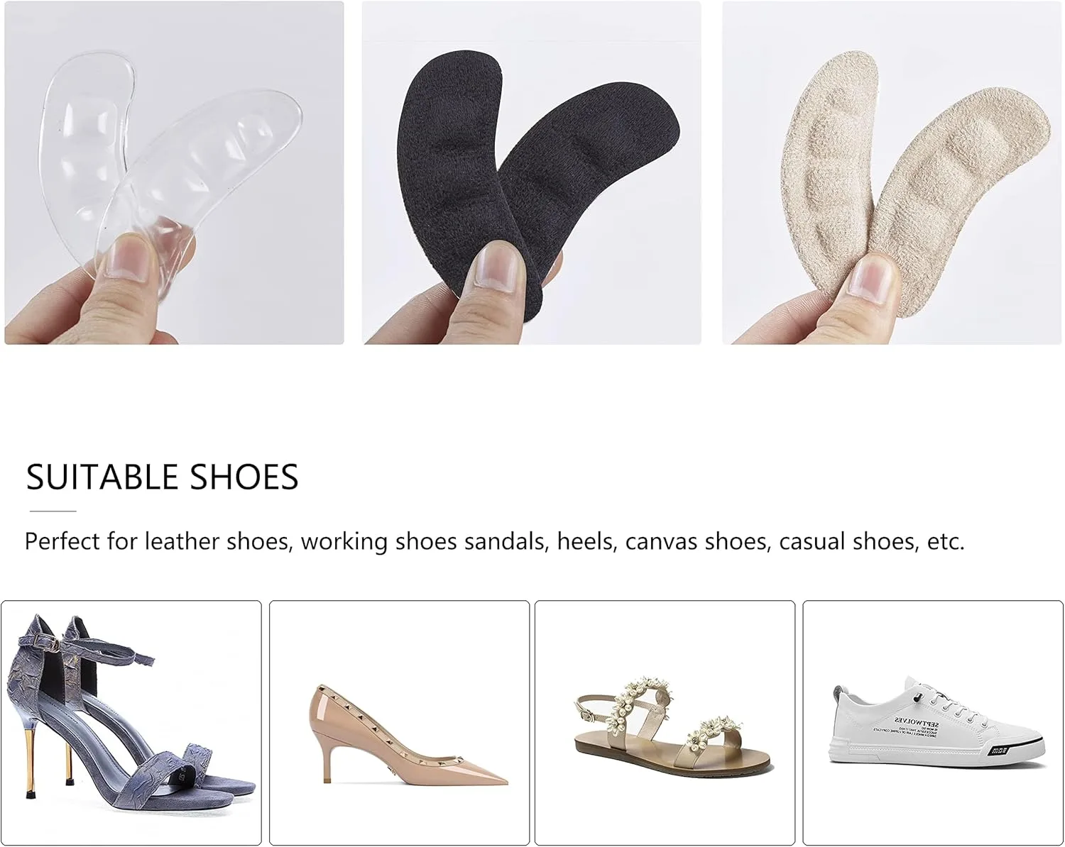 A1: Absolutely! One of the standout features of these metatarsal pads is their incredible versatility. They are designed with a thoughtful, discreet profile that allows them to seamlessly fit into virtually all types of footwear. Whether you’re looking for relief in your elegant high heels for a special occasion, your everyday flats for running errands, sturdy boots for colder weather, comfortable sneakers for your daily walk, or even your professional work shoes, these pads are engineered for wide compatibility. Their clever design ensures they provide targeted relief without bulky interference, so you can enjoy comfort across your entire shoe collection without compromise.