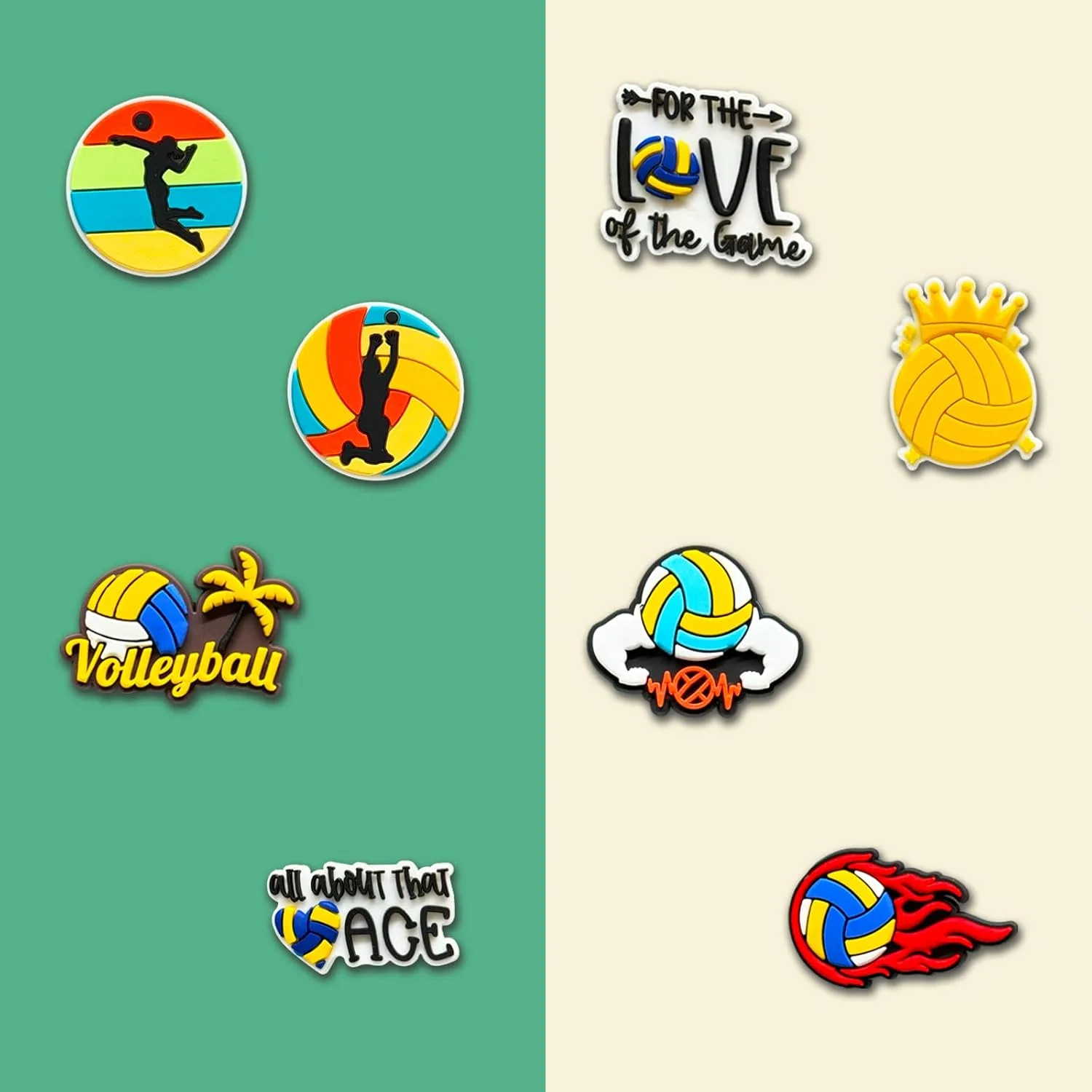 This charm pack comes with a generous 32 unique pieces, offering a fantastic array of designs! The themes primarily focus on popular sports like volleyball, basketball, hockey, and pickleball, as well as activities like ballet, cheer, and surfing. This wide variety ensures there’s something to match nearly every child’s interest or current passion, allowing for diverse personal expressions and endless mixing and matching possibilities.